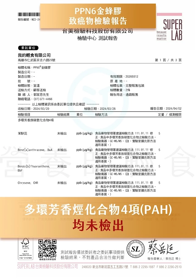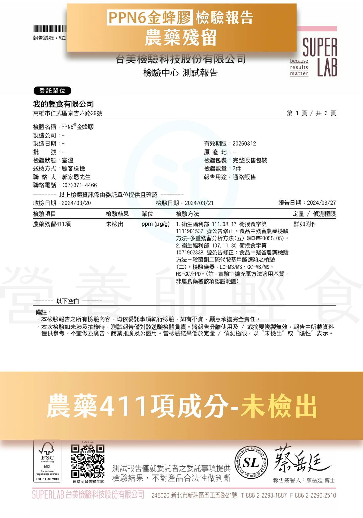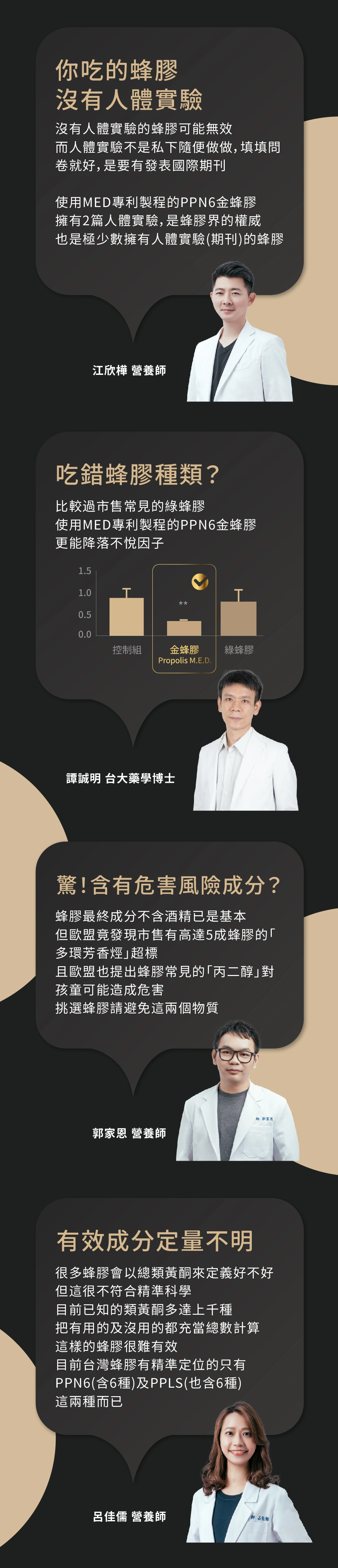 PPN6金蜂膠來自米蘭40年歷史淬鍊的蜂膠,色澤呈現頂級琥珀金,無酒精、不刺激、不辣口,保證不含丙二醇及多環芳香烴,小孩可直接滴管使用,或者加入溫開水攪拌使用