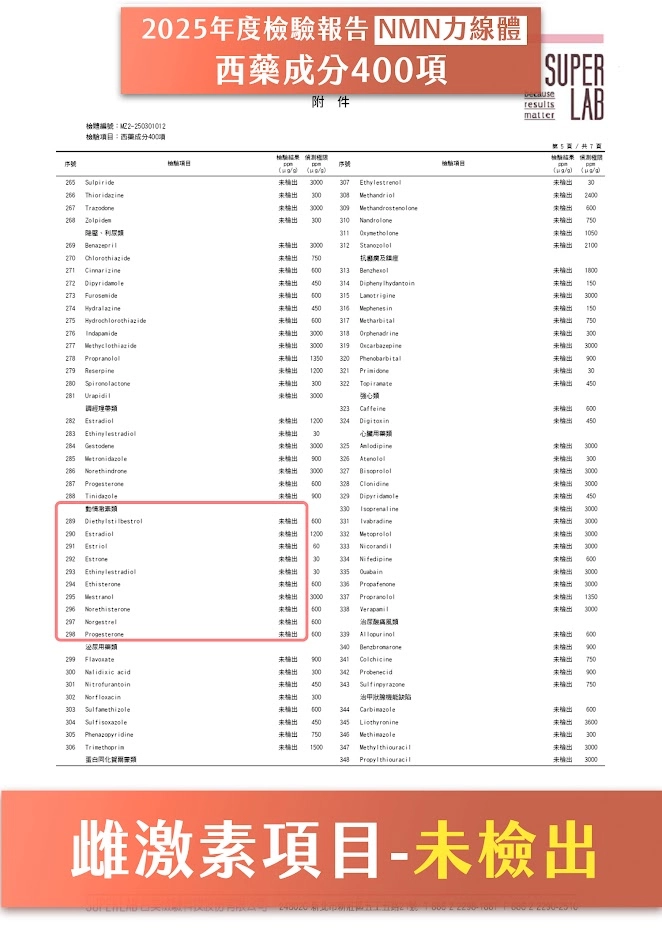 (產品頁面→相關檢驗→西藥成分檢驗報告→雌激素)